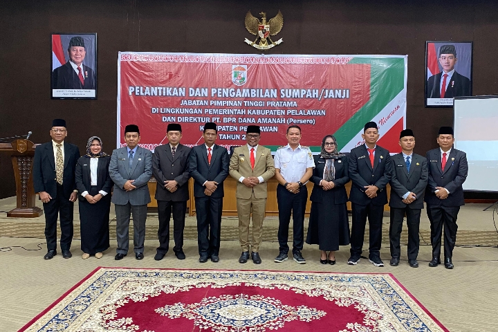 Pangkalan Kerinci, PugaNews.com : Bupati Pelalawan H. Zukri secara resmi melantik tujuh pejabat pimpinan tinggi pratama (Eselon II) di lingkungan Pemerintah Kabupaten Pelalawan serta satu direktur Ban...